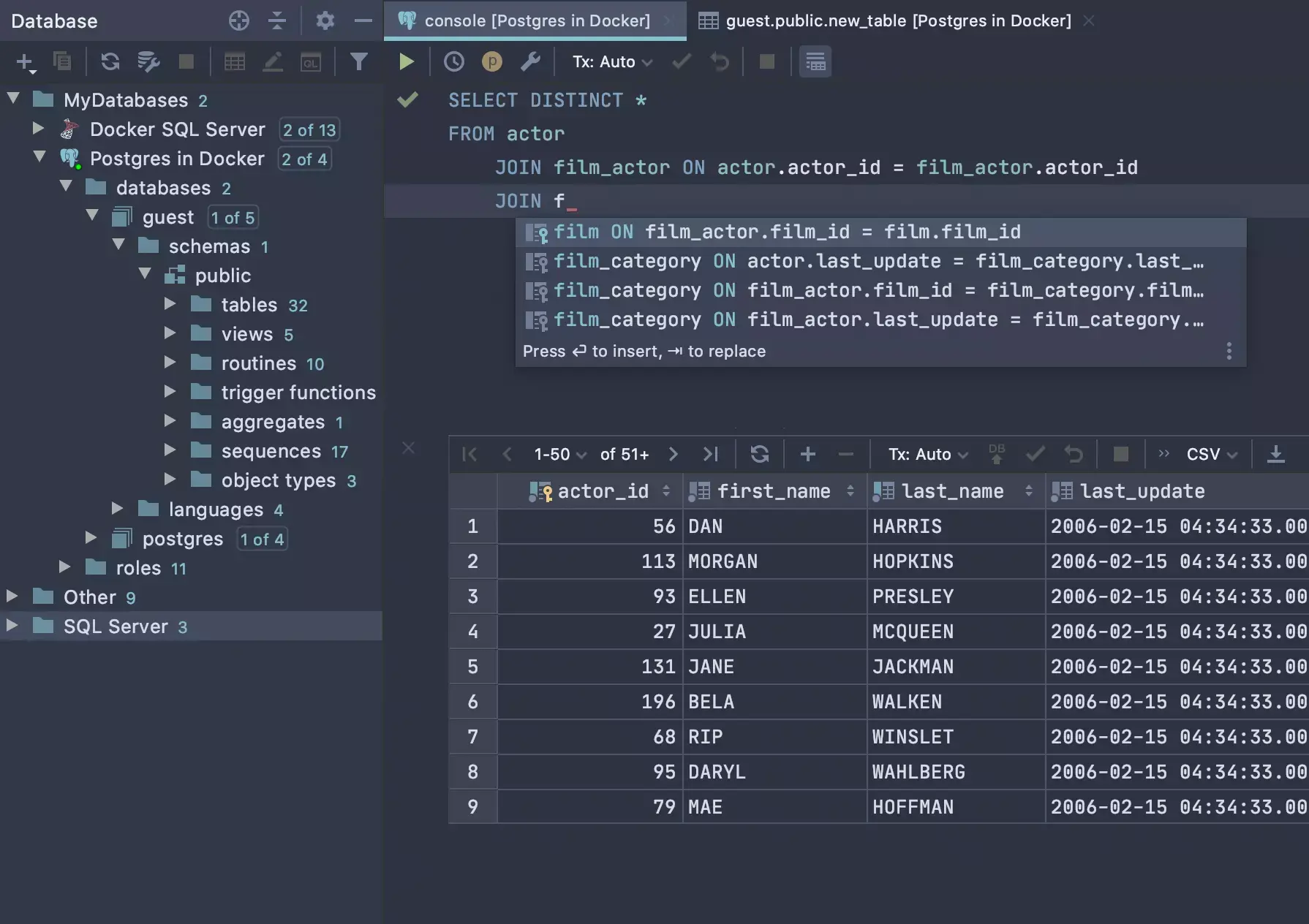 DataGrip is part of the JetBrains ecosystem, offering integration with other JetBrains tools and frameworks to provide a cohesive experience with other JetBrains IDEs. So it's perfect if you prefer a dedicated IDE with comprehensive database management features.